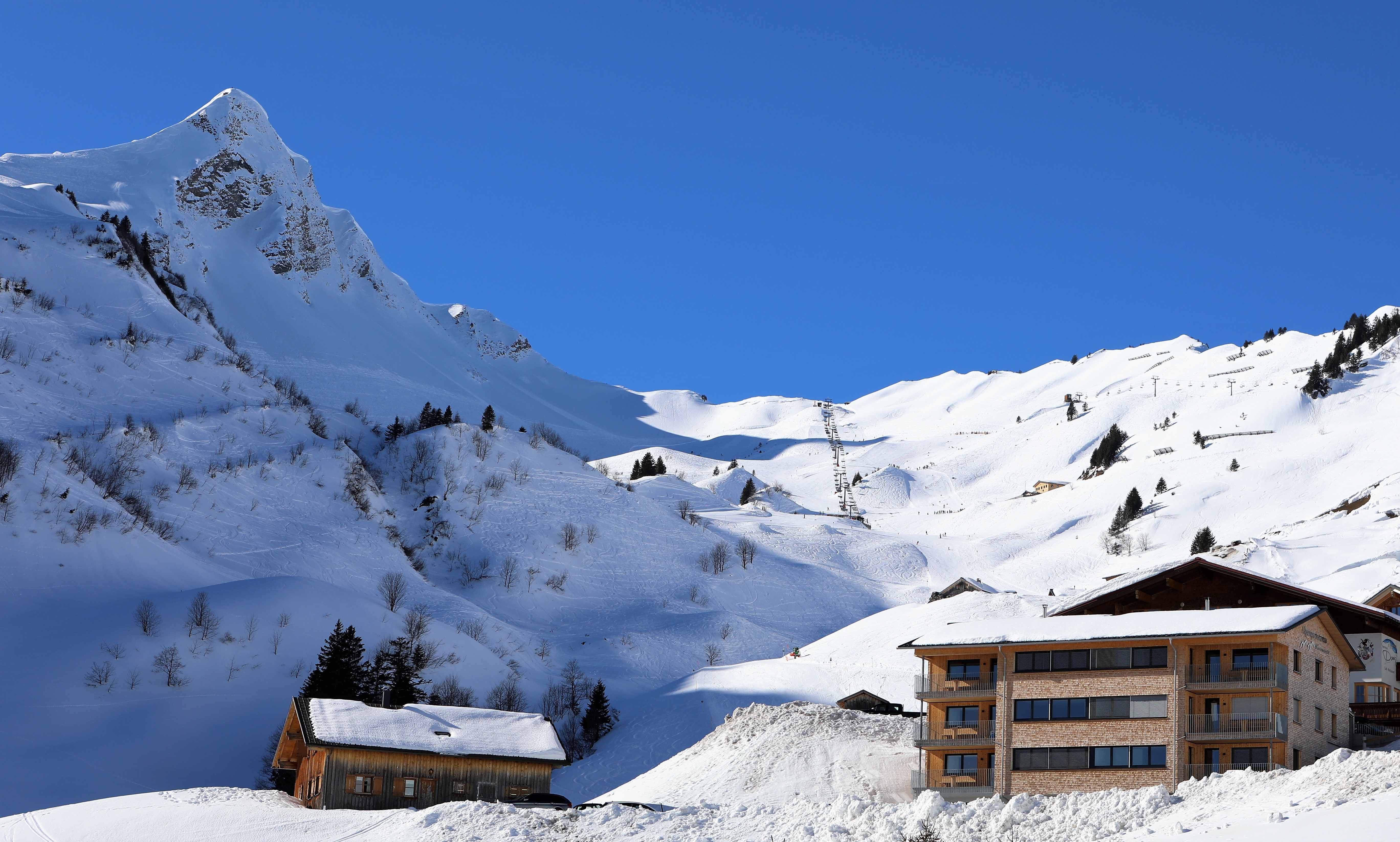 Für alle Skifahrer bietet das Alpenpanorama mehrere Möglichkeiten. In das Skigebiet von Faschina kann 30 Meter nebenan in den Schlepplift eingestiegen werden.